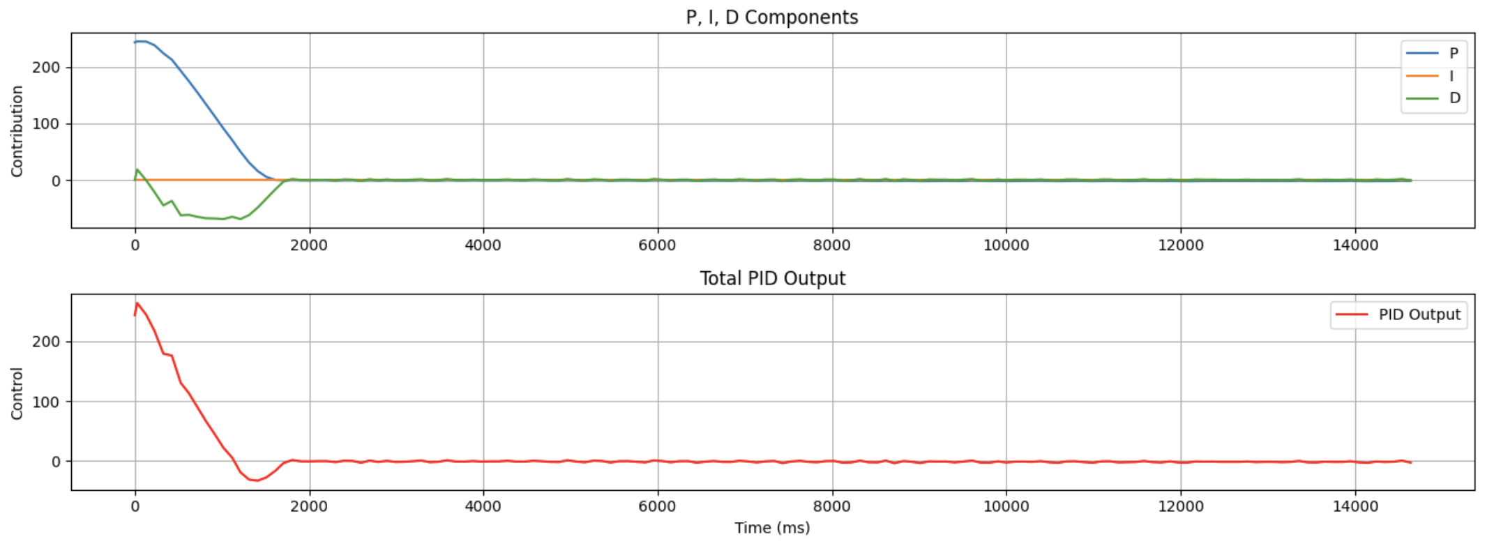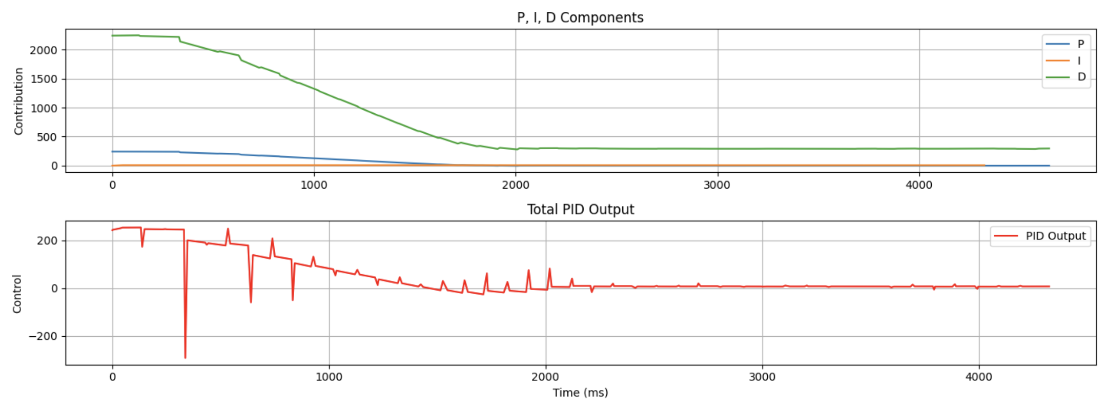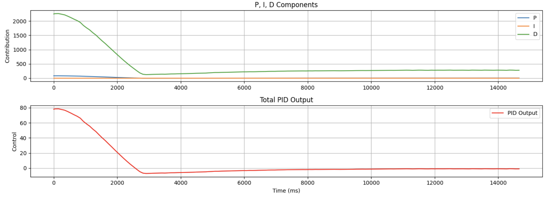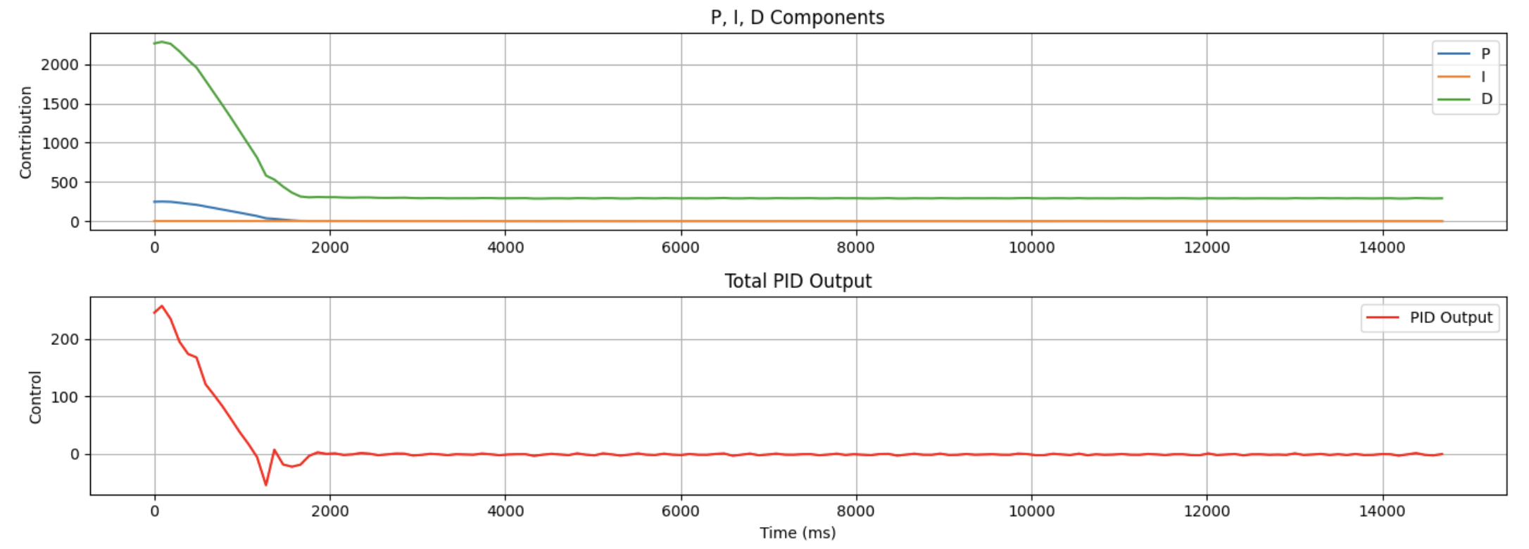 With this more responsive control, I needed to retune the PID gains. This involved increasing the integral gain since there are now many more samples with smaller time deltas.