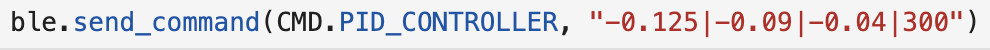 In order to achieve this, the bluetooth command must include four important data entries. This is the gain for each PID element in addition to the target distance in mm.