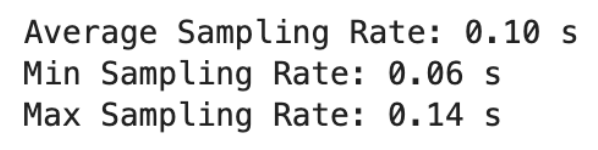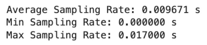 The same script as previous labs was run to get initial beliefs about dt, in this case 0.1s or 10Hz.