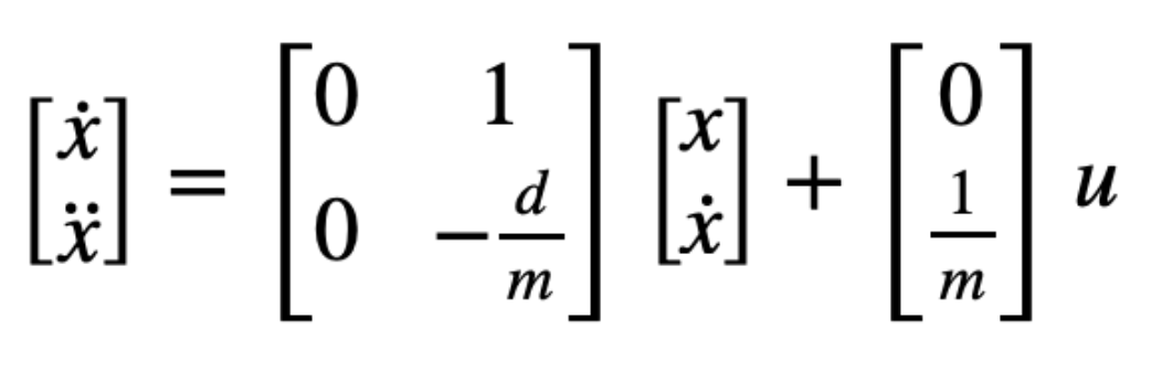 A = np.array([[0, 1],[0, -d/m]])